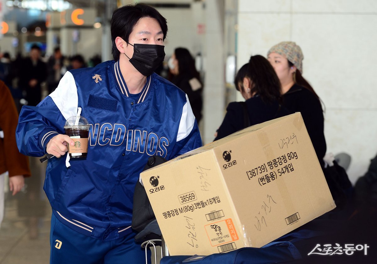 프로야구 NC 다이노스가 30일 인천국제공항을 통해 스프링캠프 훈련지인 미국으로 출국했다. NC 박건우가 출국장으로 이동하고 있다.