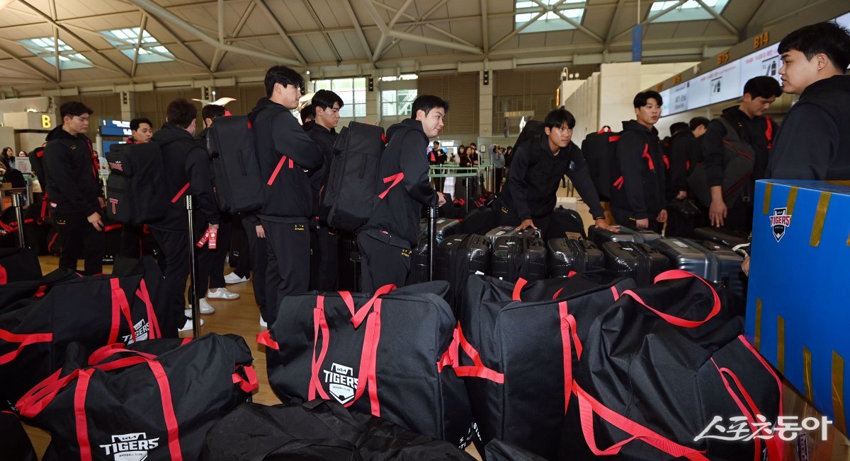 프로야구 KIA 타이거즈가 30일 인천국제공항을 통해 스프링캠프 훈련지인 호주로 출국했다. KIA 선수들이 출국에 앞서 짐을 정리하고 있다.