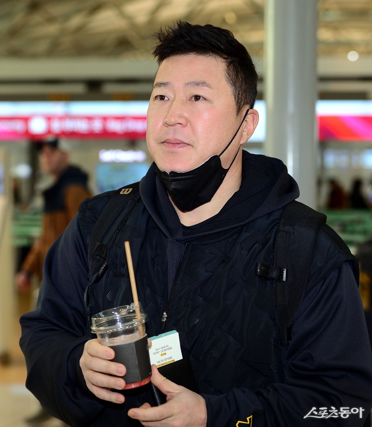 프로야구 KIA 타이거즈가 30일 인천국제공항을 통해 스프링캠프 훈련지인 호주로 출국했다. KIA 최형우가 출국을 준비하고 있다.