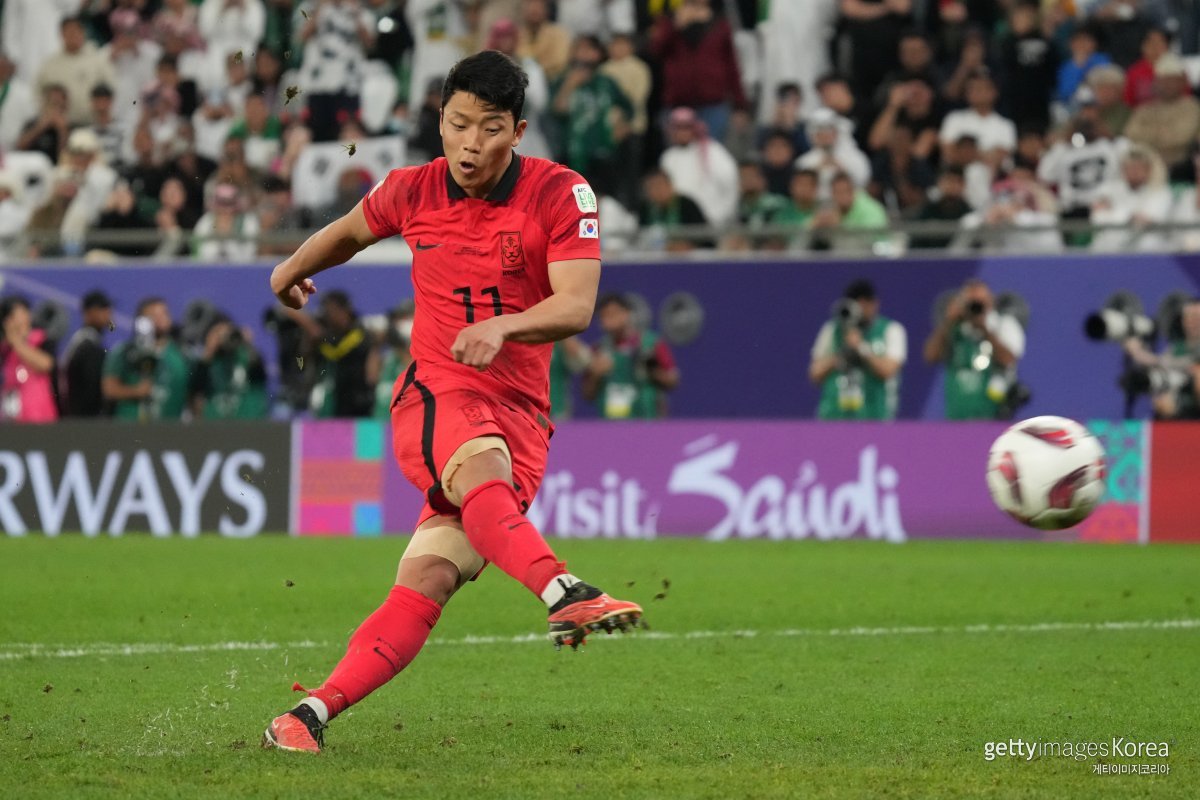 31일(이하 한국시간) 카타르 알라이얀의 에듀케이션 시티 스타디움에서 열린 2023 아시아축구연맹(AFC) 카타르 아시안컵 16강전 한국과 사우디아라비아의 경기에서 황희찬이 승부차기에 나서고 있다.