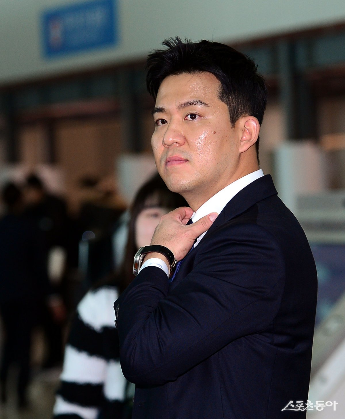 프로야구 롯데 자이언츠가 31일 인천국제공항을 통해 스프링캠프 훈련지인 괌으로 출국했다. 롯데 김민성이 출국장으로 이동하고 있다.