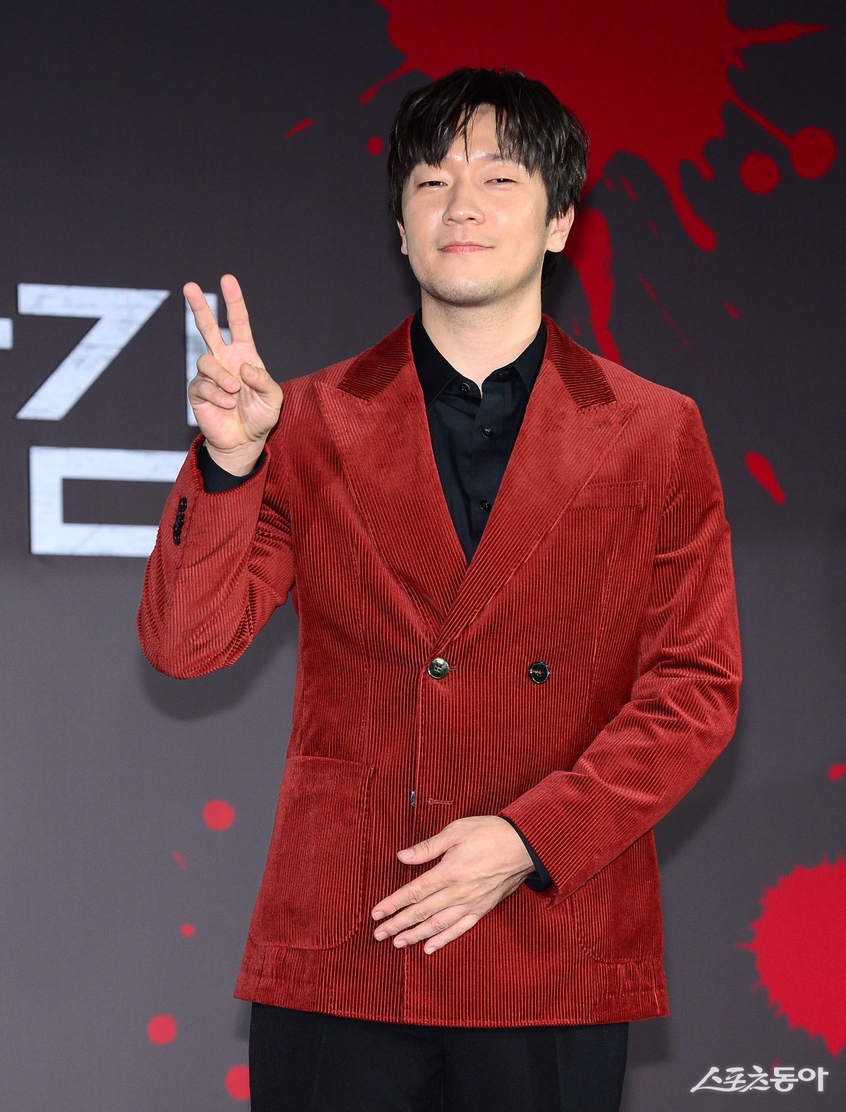1일 서울 용산구 몬드리안 호텔 이태원에서 열린 넷플릭스 오리지널 시리즈 ‘살인자o난감’ 제작발표회에 참석한 배우 손석구가 카메라를 향해 포즈를 취하고 있다.