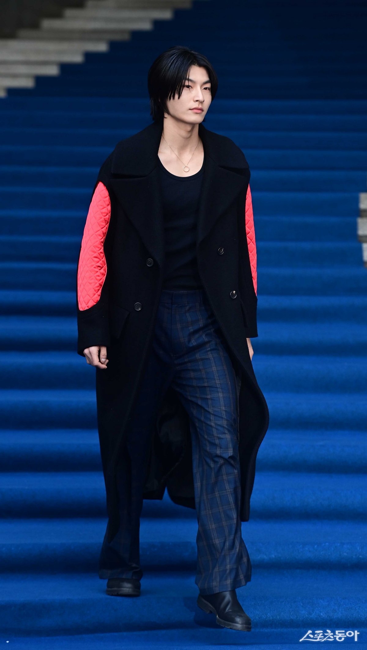 모델 김현재가 1일 서울 중구 동대문디자인플라자에서 열린 ‘2024 F/W 서울패션위크’ 포토월 블루카펫을 걷고 있다.