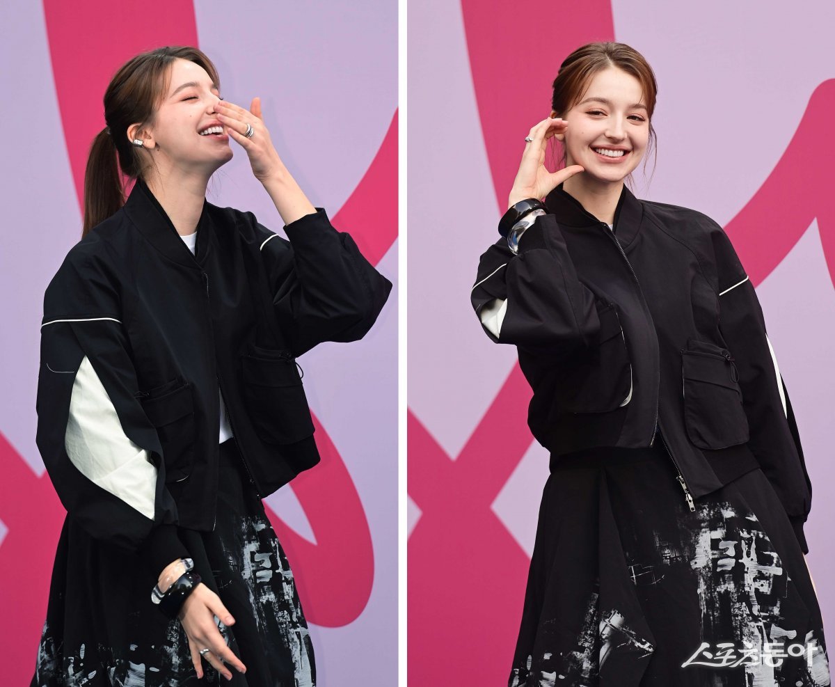 방송인 안젤리나 다닐로바가 1일 서울 중구 동대문디자인플라자에서 열린 ‘2024 F/W 서울패션위크’ 포토월에서 포즈를 취하고 있다.