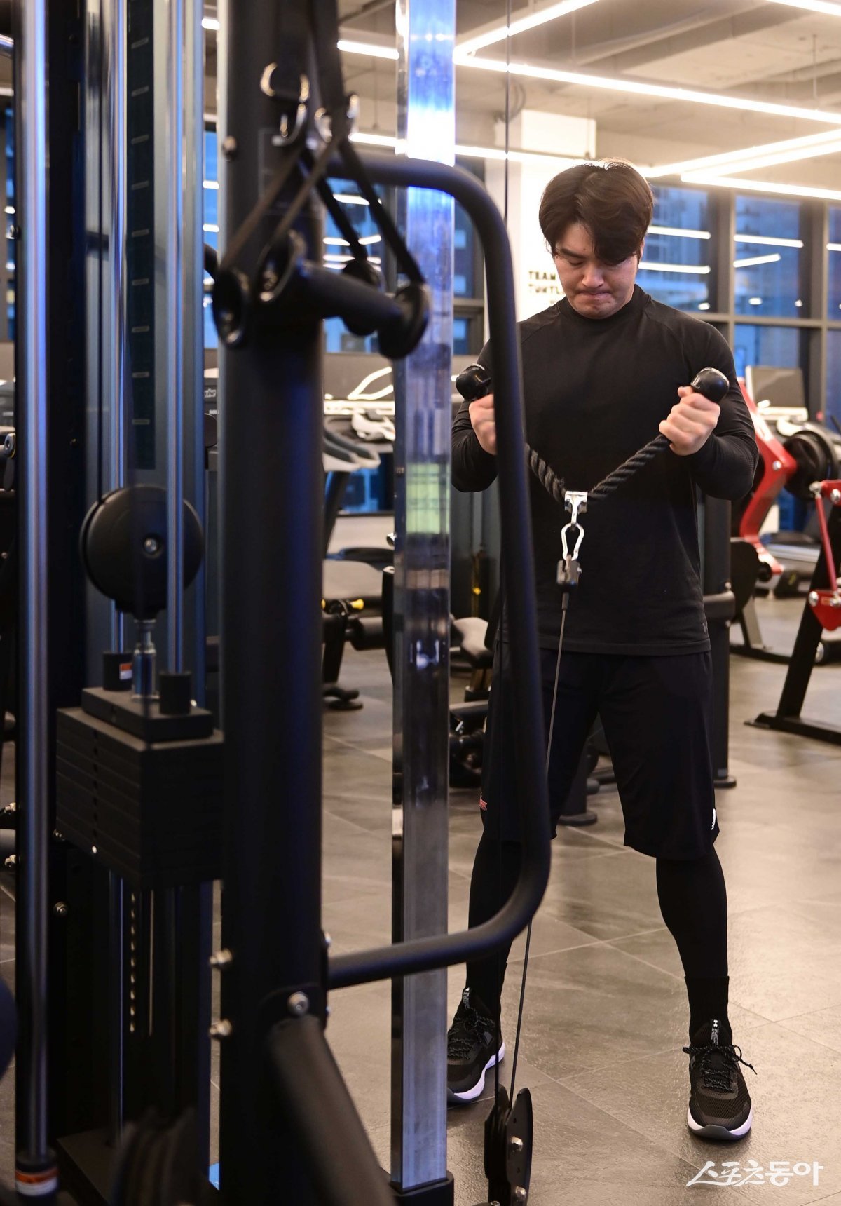 KT 박병호가 5일 부산 기장군 한 헬스장에서 열린 ‘2024 KT 위즈 스프링캠프’에서 웨이트 트레이닝을 하고 있다.