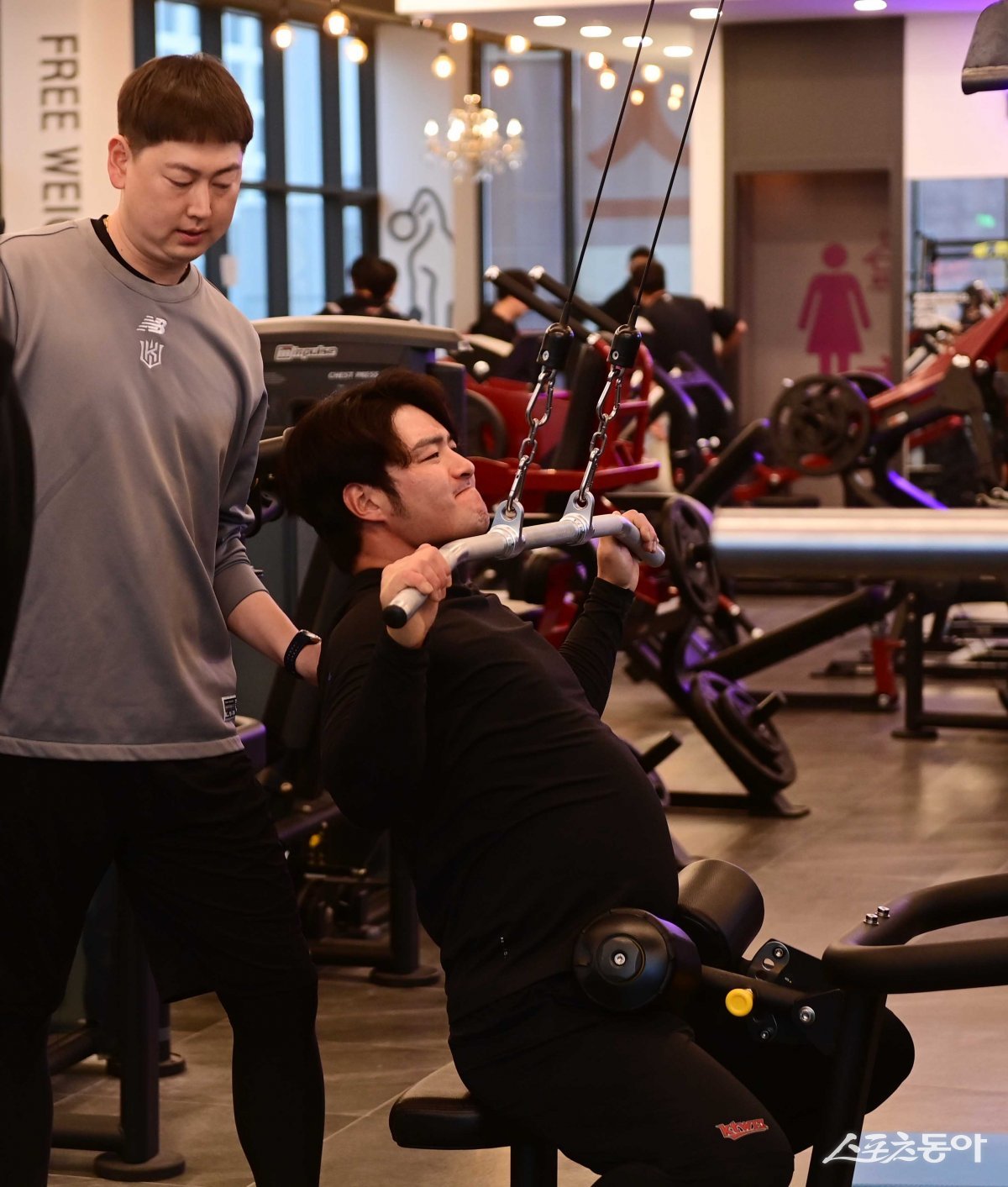 KT 박병호가 5일 부산 기장군 한 헬스장에서 열린 ‘2024 KT 위즈 스프링캠프’에서 웨이트 트레이닝을 하고 있다.