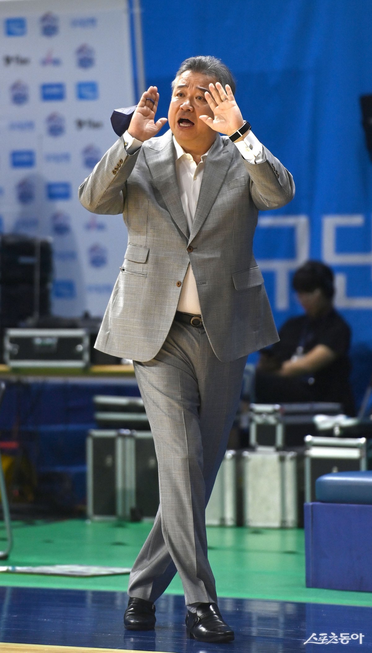 5일 아산이순신체육관에서 열린 ‘우리은행 우리WON 2023~24 여자프로농구’ 우리은행과 삼성생명 경기에서 삼성생명 임근배 감독이 작전 지시를 하고 있다.