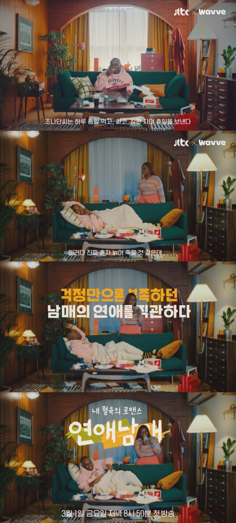 JTBC·웨이브 새 예능 프로그램 ‘연애남매’ 티저 속 파트리샤가 독수공방 위기에 놓인 오빠 조나단을 위해 두 팔을 걷어붙인다.