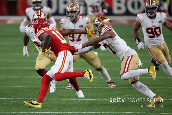 12일(한국시간) 미국 네바다주 라스베이거스 얼리전트 스타디움에서 열린 제58회 슈퍼볼 캔자스시티 치프스와 샌프란시스코 포티나이너스의 경기 장면.