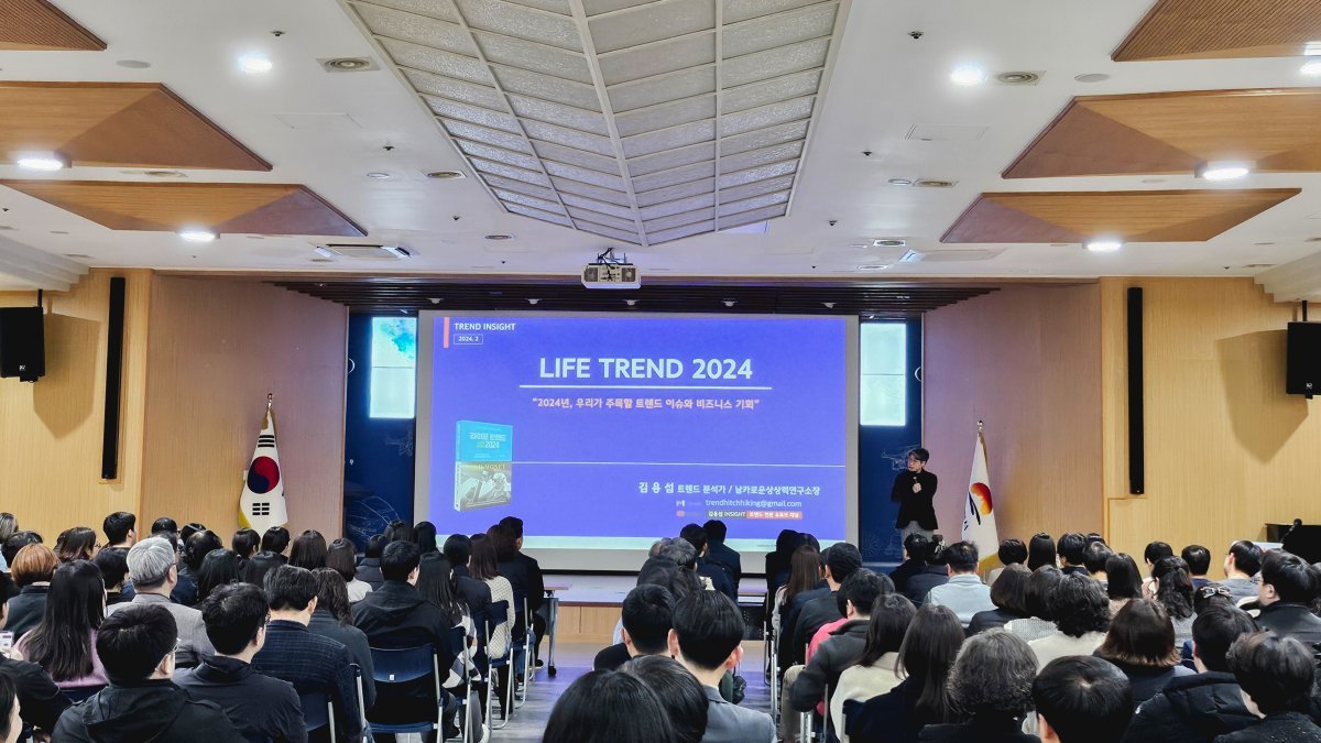 트렌드 분석가 김용섭 날카로운상상력연구소 소장이 강단에 올라 2024년 주목해야 할 트렌드 이슈와 비즈니스 기회에 대해 심도 있는 이해를 끌어내 참석자들의 큰 호응을 얻었다.