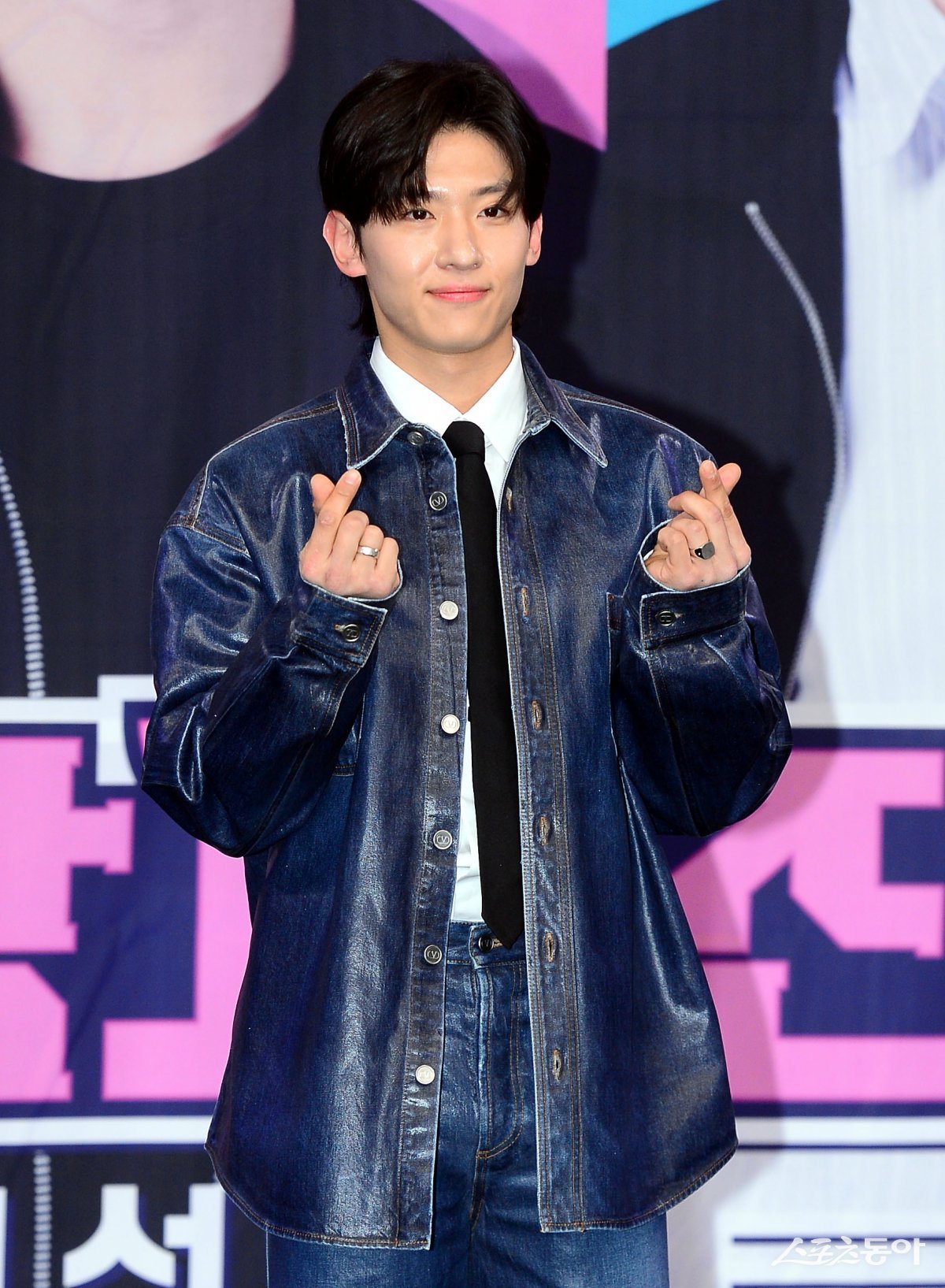 15일 서울 마포구 MBC 골든마우스홀에서 열린 MBC 새 예능 ‘대학체전 : 소년선수촌’ 제작발표회에 참석한 덱스가 카메라를 향해 포즈를 취하고 있다.