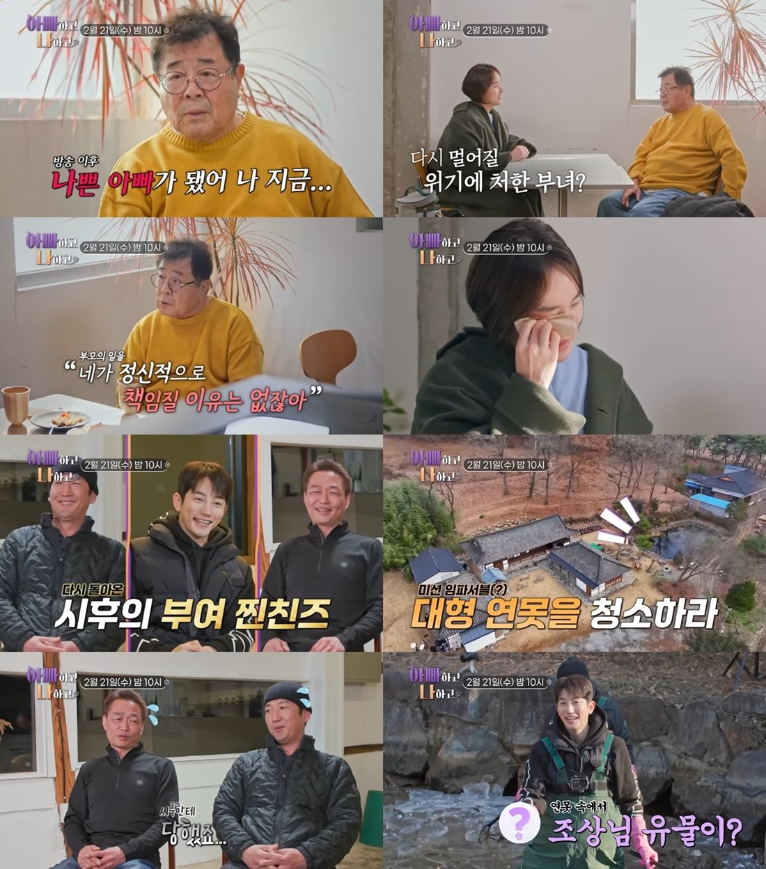 그러던 중 박시후의 친구가 연못에서 오래된 무언가를 발견하며 시선을 강탈했다. 그는 "집터를 파보면 유물이 많이 나올 것 같다"라며 눈을 반짝였고, 박시후는"더 파보자"라며 의욕을 드러냈다. \'부여 만석꾼\' 박시후 집안 연못에 담긴 비밀은 과연 무엇일지, 이번 주 수요일 \'아빠하고 나하고\' 본 방송에서 확인할 수 있다.