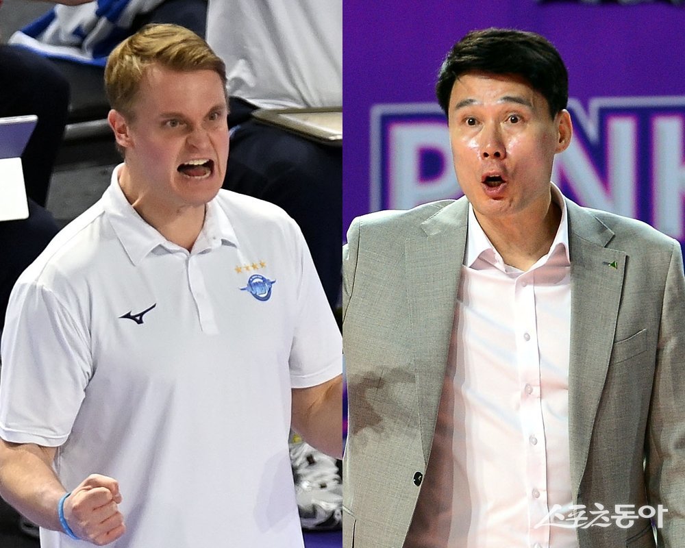 토미 틸리카이넨 대한항공 감독(왼쪽), 강성형 현대건설 감독. 스포츠동아DB