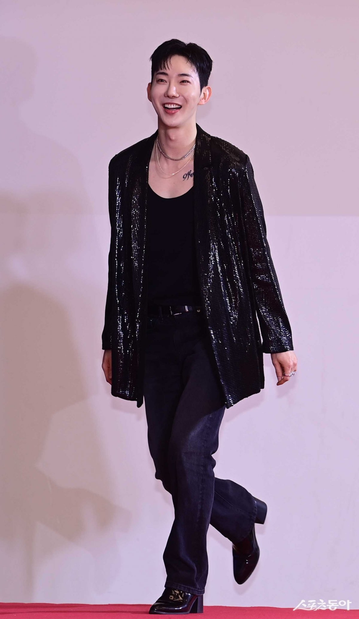가수 조권이 18일 서울 중구 을지로 동대문디자인플라자에서 열린 ‘31주년 한터뮤직어워즈 2023’ 레드카펫을 통해 입장하고 있다.