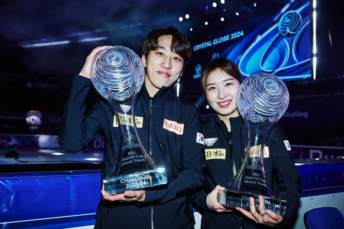 한국선수들이 2023~2024시즌 쇼트트랙 월드컵 시리즈를 지배했다. 간판스타 박지원(28·서울시청)과 김길리(20·성남시청)가 남녀 개인전 종합우승 트로피인 ‘크리스털 글로브’를 나란히 거머쥐었다.
