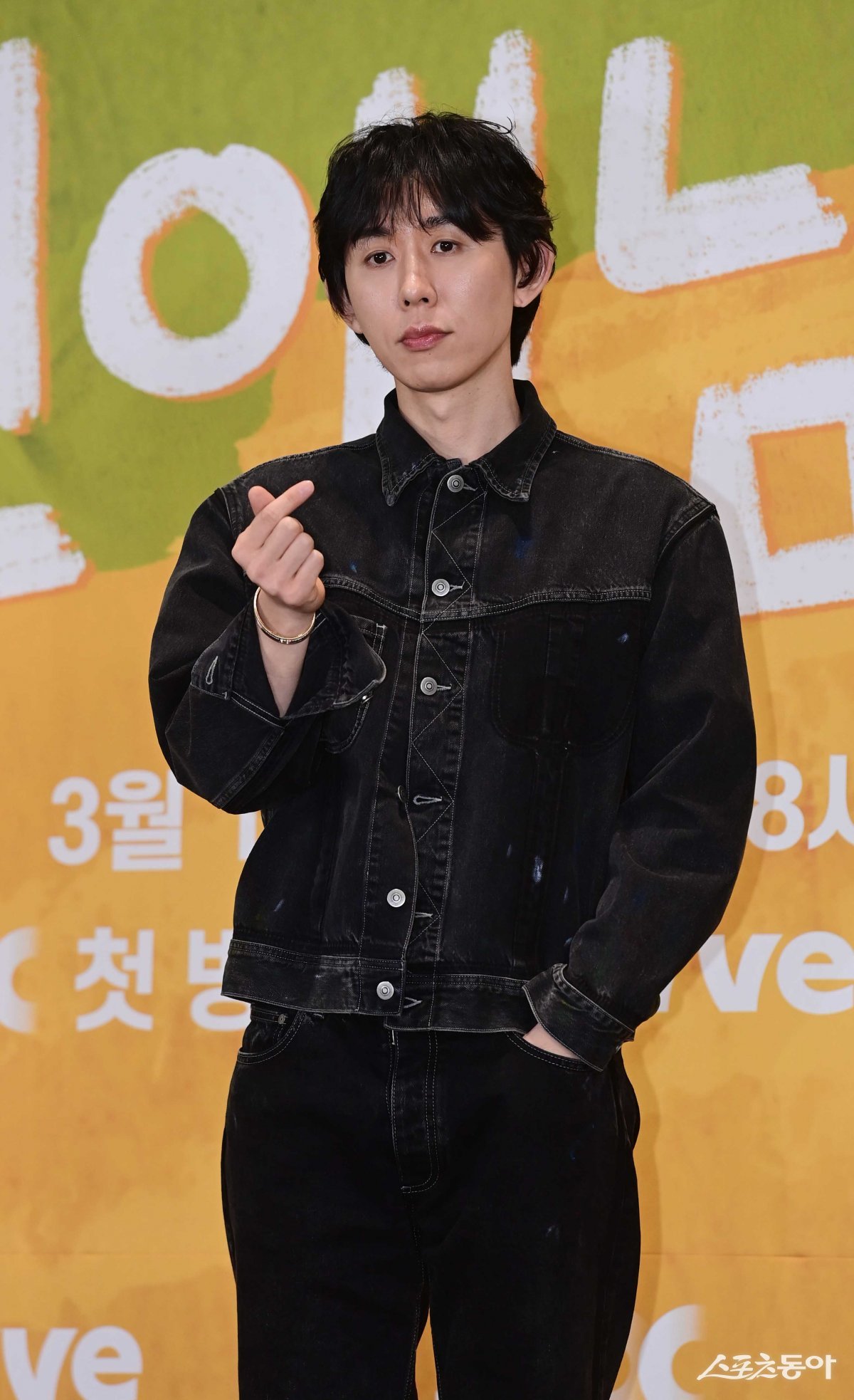 가수 코드쿤스트가 21일 경기도 고양시 일산동구 소노캄고양웨스트타워에서 열린 JTBC X 웨이브 새 예능프로그램 ‘연애남매’ 제작발표회에서 포즈를 취하고 있다.