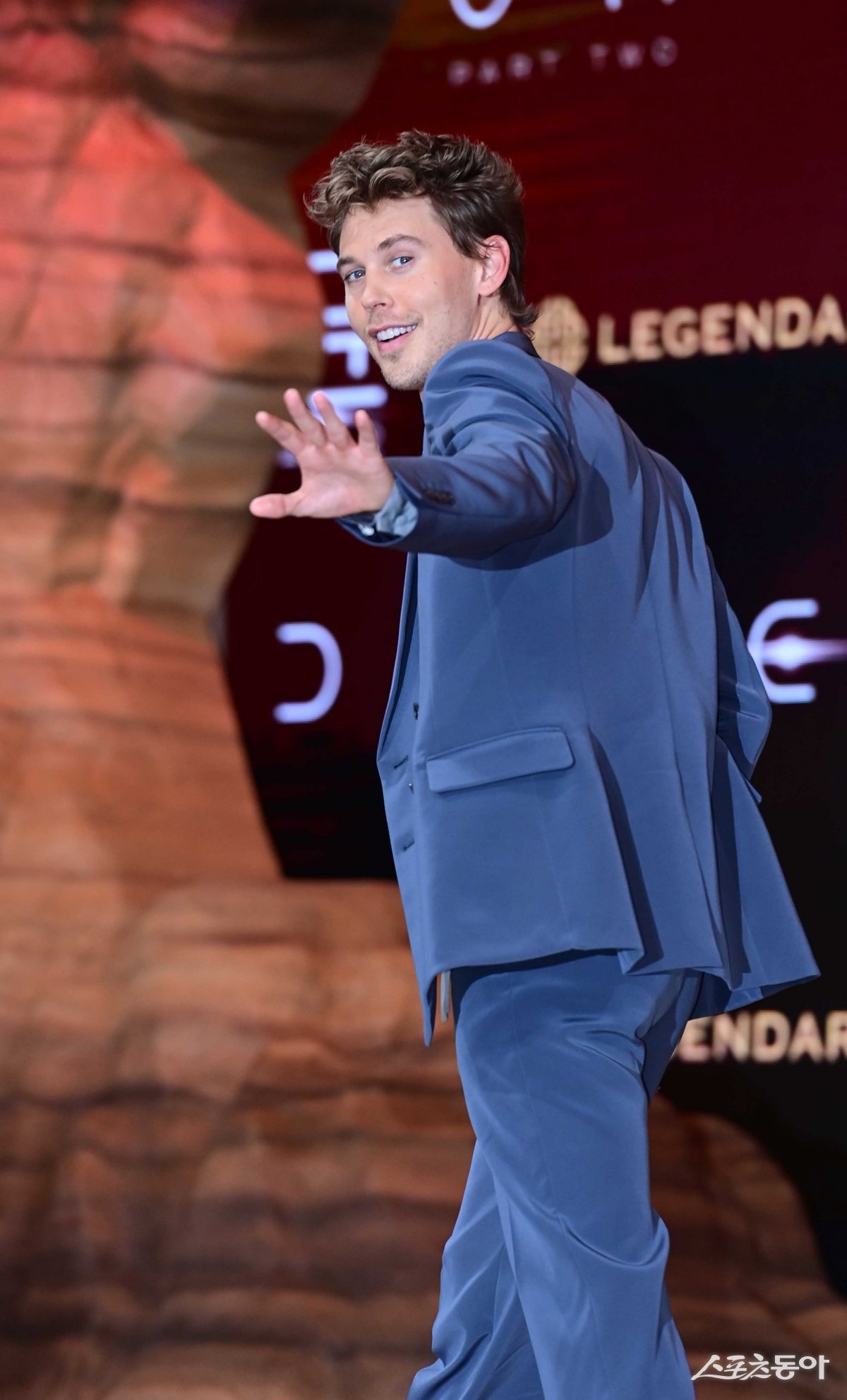 배우 오스틴 버틀러가 21일 서울 영등포구 여의도동 콘래드서울에서 열린 영화 ‘듄: 파트2’ 내한 기자간담회에서 포즈를 취하고 있다.