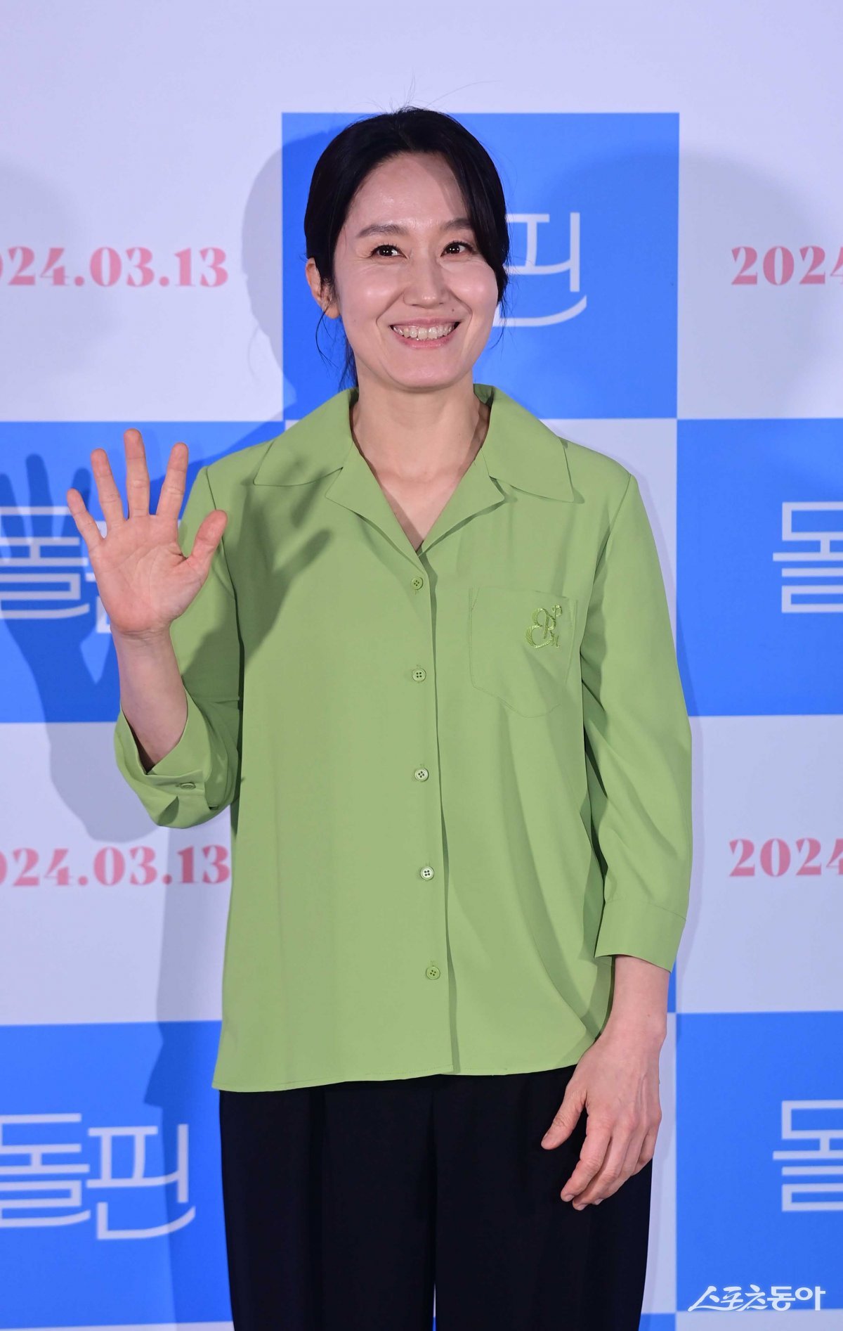 배우 박미현이 26일 서울 광진구 자양동 롯데시네마 건대입구점에서 열린 영화 ‘돌핀’ 언론시사회에서 포즈를 취하고 있다.