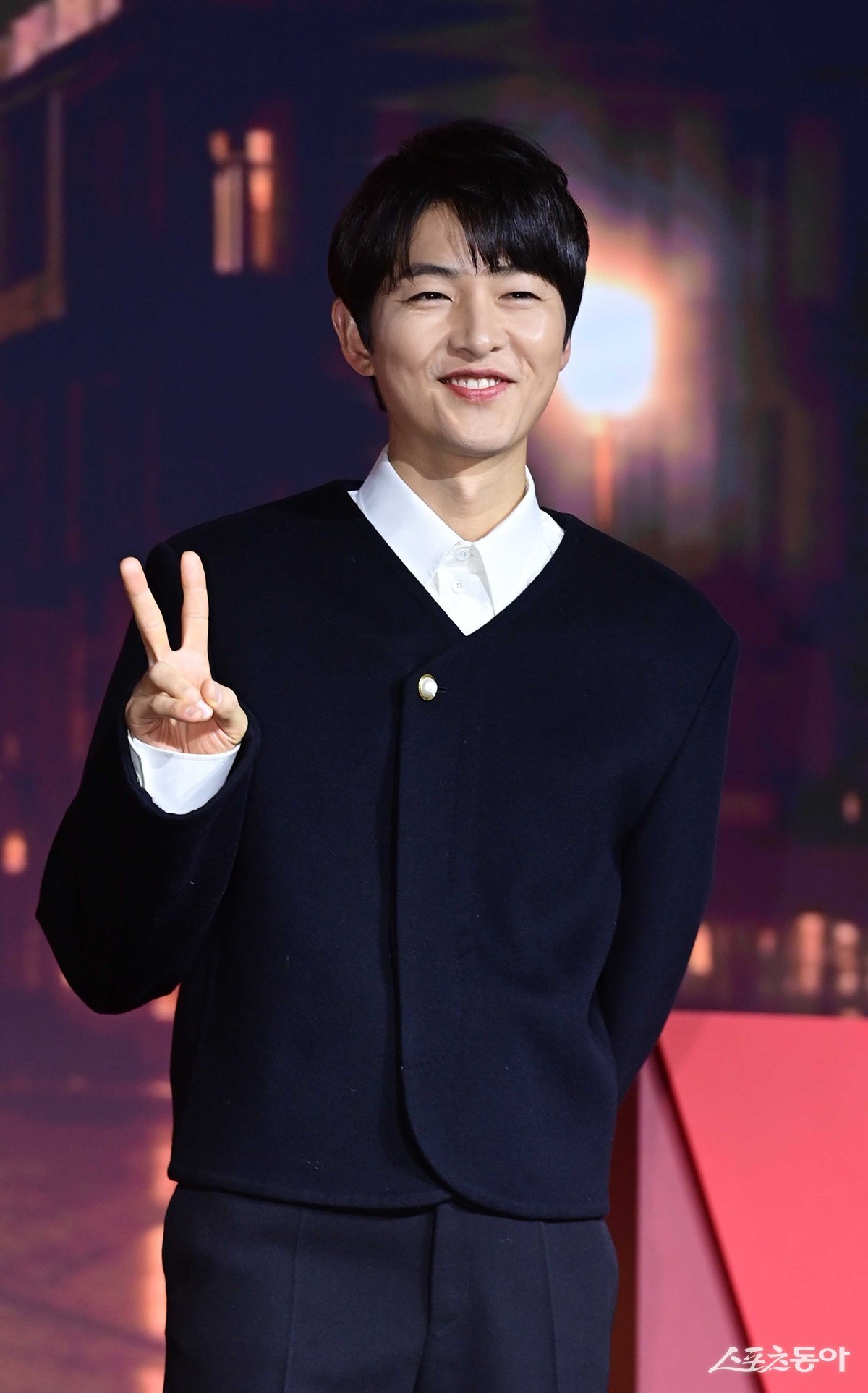 배우 송중기가 27일 서울 마포구 마포동 호텔 나루 서울 엠갤러리에서 열린 넷플릭스 ‘로기완’ 제작보고회에서 포즈를 취하고 있다. 주현희 기자 teth1147@donga.com