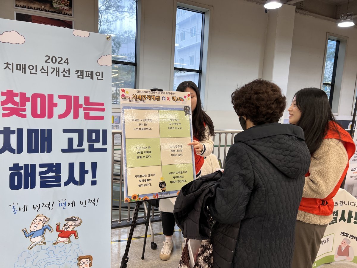 김천시보건소는 지역주민을 대상으로 매월 1회 이상 관내 대형마트, 공원, 종합병원, 노인복지관 등을 연계·순회하여 찾아가는 치매 인식개선 캠페인 및 「동에 번쩍! 면에 번쩍! 치매 고민 해결사!」 이동형 상담소를 1월부터 운영 중이라고 26일 밝혔다.해당 캠페인은 지역주민에게 더욱더 가까이 다가가 치매에 대한 부정적인 인식을 낮추고 치매 조기 검진 및 치매 예방수칙으로 건강을 관리하기 위해 추진한다.