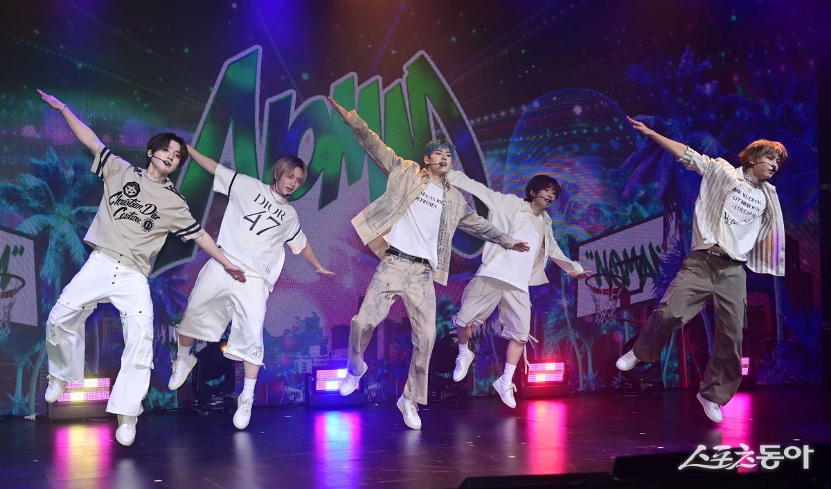 그룹 노매드가 28일 서울 강남구 논현동 성암아트센터에서 열린 데뷔 앨범 ‘NOMAD‘ 발매 프레스 쇼케이스에서 더블 타이틀곡 ’California Love’ 무대를 펼치고 있다.