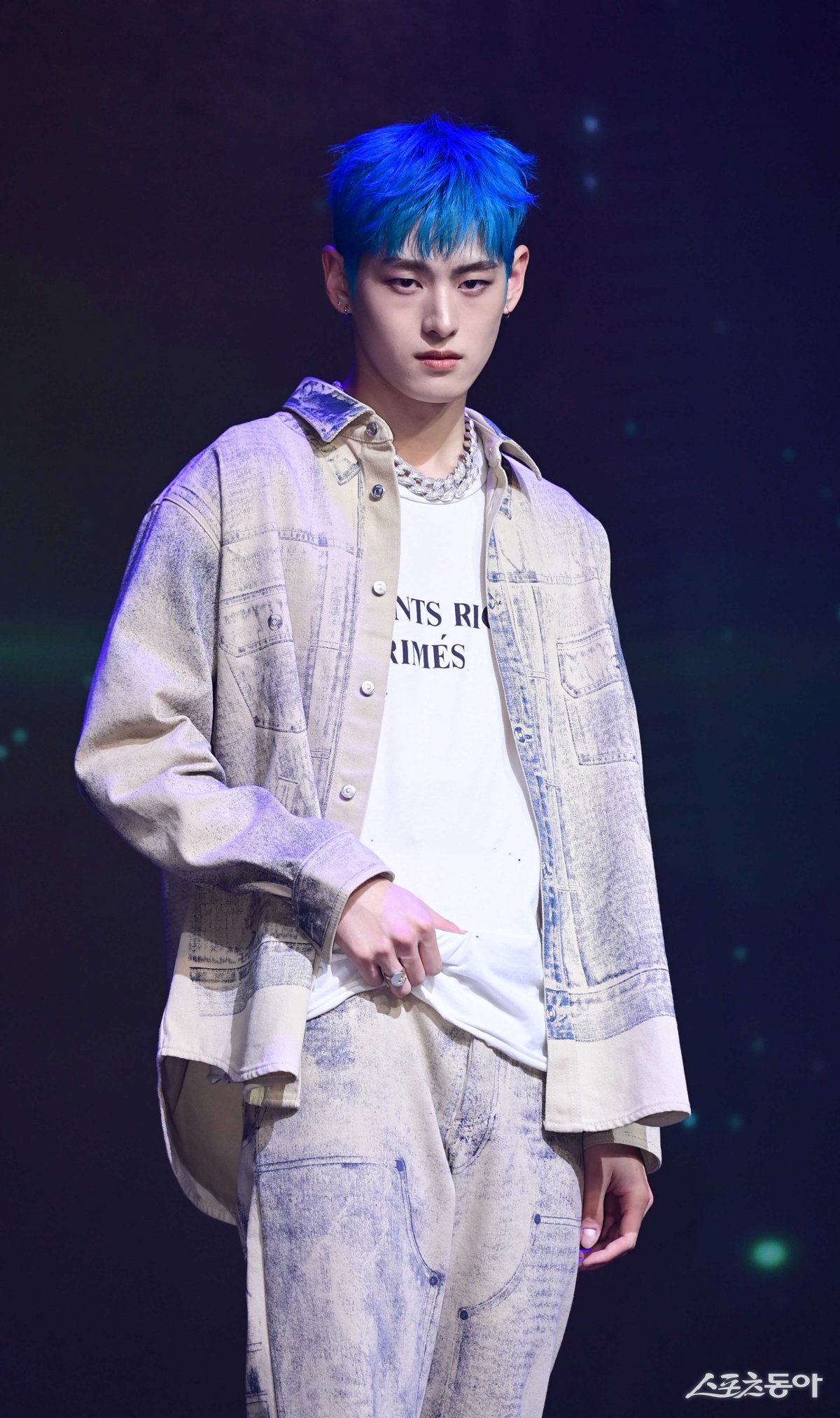 그룹 노매드 준호가 28일 서울 강남구 논현동 성암아트센터에서 열린 데뷔 앨범 ‘NOMAD‘ 발매 프레스 쇼케이스에서 포즈를 취하고 있다.