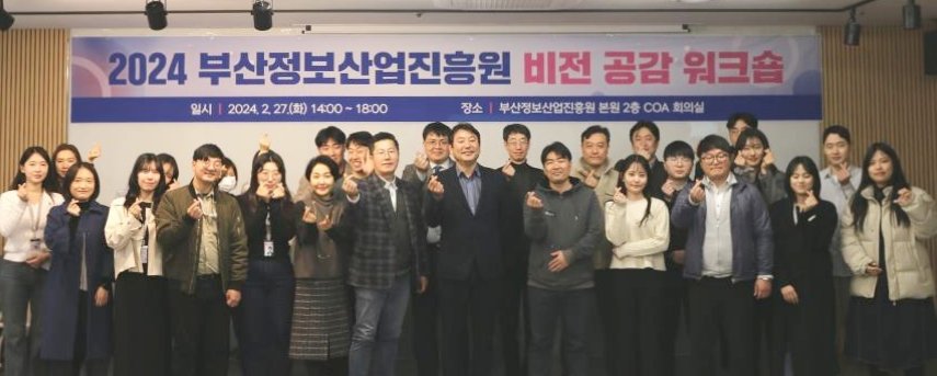 부산정보산업진흥원(원장 김태열)이 임직원 30여명이 참여한 가운데 ‘비전 공감 워크숍’을 지난 27일 개최했다고 밝혔다.임직원 참여해 활발한 토론·의견 공유