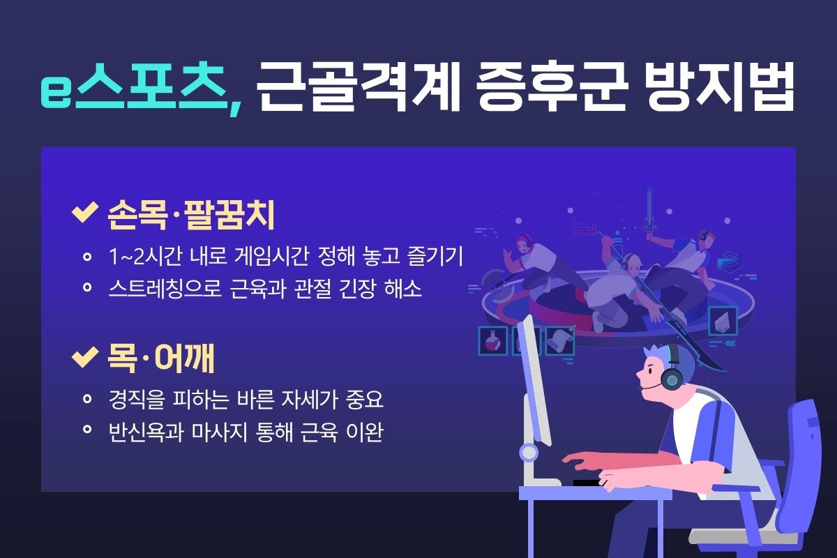 한국콘텐츠진흥원의 ‘2022 게임 이용자 실태조사’에 따르면 만 10세부터 65세 사이 국민 중 약 74%가 게임을 즐기는 것으로 조사됐다. 2021년 조사 대비 3.1% 증가한 수치다. 응답자의 하루 평균 게임 이용 시간은 주중 132분, 주말 209분으로 나타났다. 대중적인 여가 문화로 자리 잡은 게임 문화지만, 장시간 몰입해 즐기다 보면 손목, 팔꿈치, 목에 통증을 느낄 수 있다. 부평힘찬병원 정형외과 김태섭 원장의 도움말로 e스포츠를 즐길 때 겪을 수 있는 근골격계 증후군에 대해 알아보았다.● 손목과 팔꿈치, 구부려 통증 느끼면 터널 증후군 의심