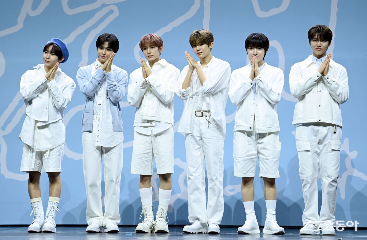 그룹 ‘엔시티 위시(NCT WISH) NCT WISH)’가 4일 서울 용산구 블루스퀘어 마스터카드홀에서 열린 데뷔 싱글 ‘WISH’ 발매 쇼케이스에서 포토타임을 갖고 있다.