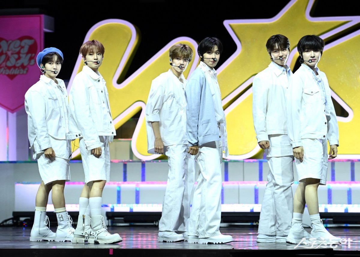그룹 ‘엔시티 위시(NCT WISH) NCT WISH)’가 4일 서울 용산구 블루스퀘어 마스터카드홀에서 열린 데뷔 싱글 ‘WISH’ 발매 쇼케이스에서 화려한 무대를 펼치고 있다.