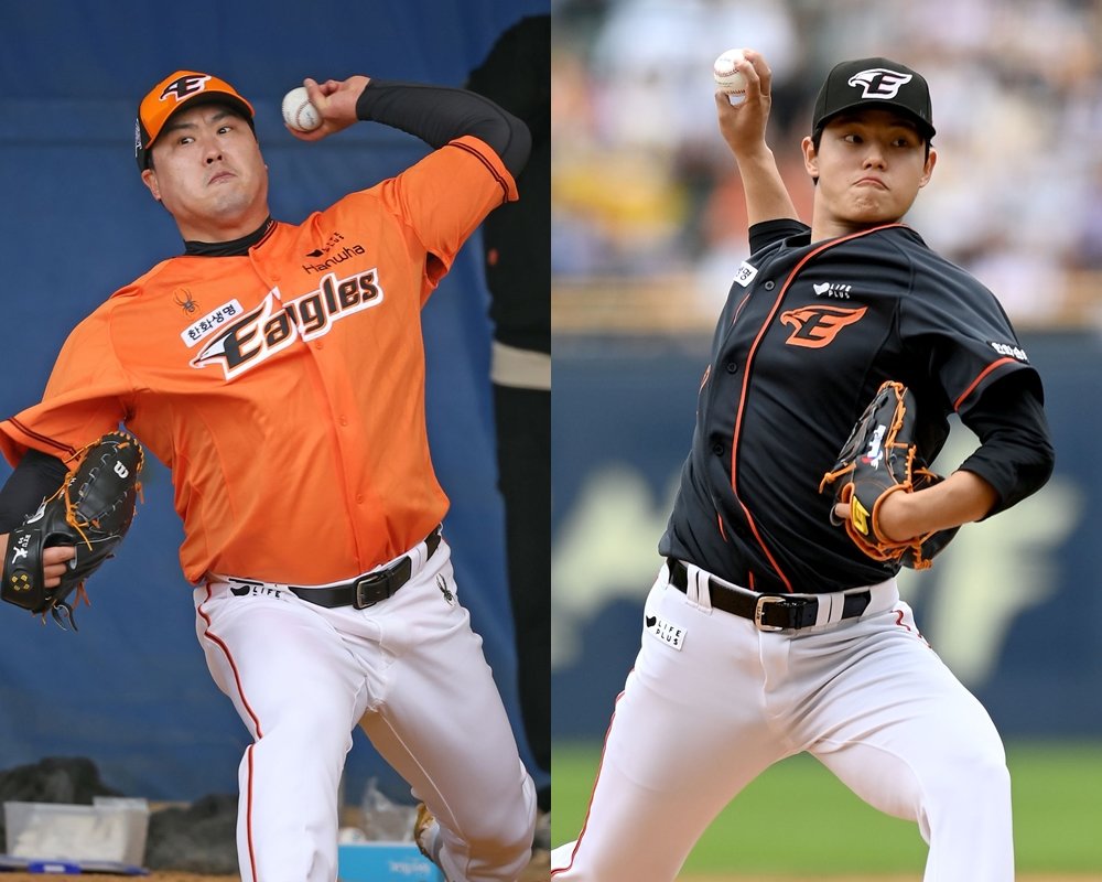 자체 훈련에는 청백전 일정도 포함돼 있다. 7일 대전한화생명이글스파크에서 청팀과 백팀으로 나눠 실전감각을 점검한다. 흥미로운 대목은 이번 청백전에 나설 2명의 선발투수다. 돌아온 특급 에이스 류현진(37)과 차세대 에이스로 통하는 문동주(21)가 선발로 맞대결을 펼친다.