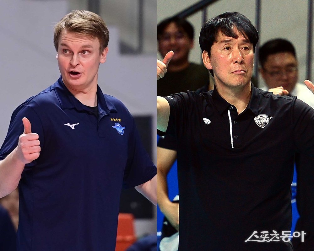 대한항공 틸리카이넨 감독(왼쪽), 우리카드 신영철 감독. 스포츠동아DB