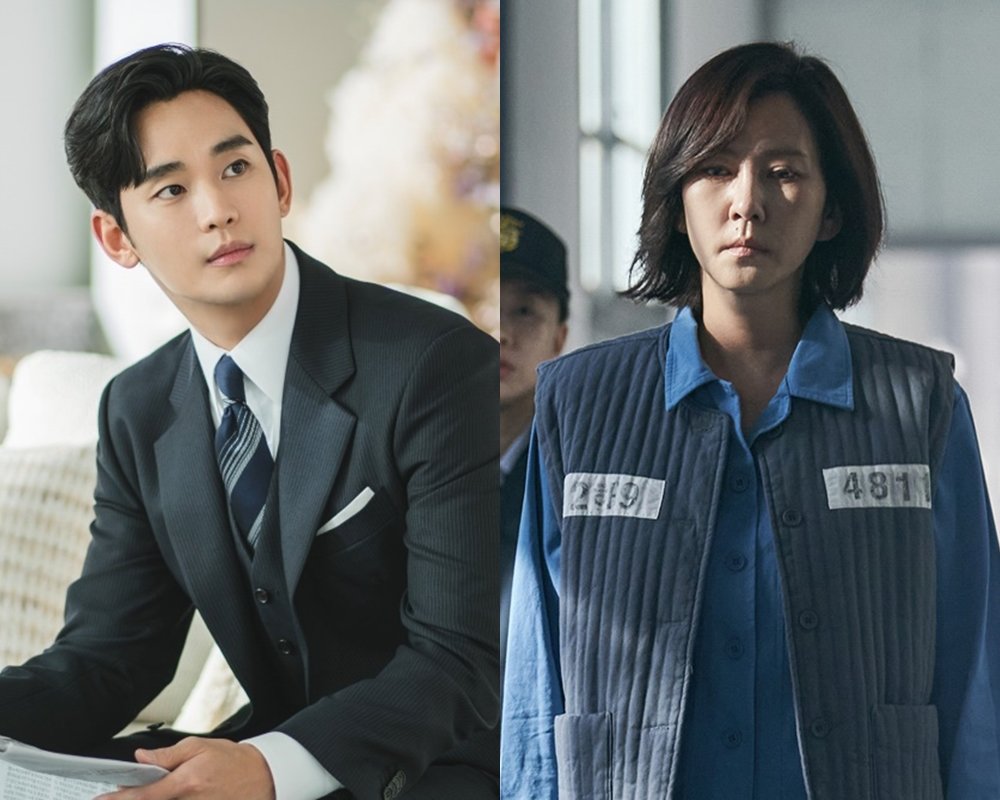 tvN ‘눈물의 여왕’의 김수현, MBC ‘원더풀 월드’의 김남주(왼쪽부터) 등 톱스타들이 안방극장의 열기를 끌어올리고 있다. 사진제공|tvN·MBC