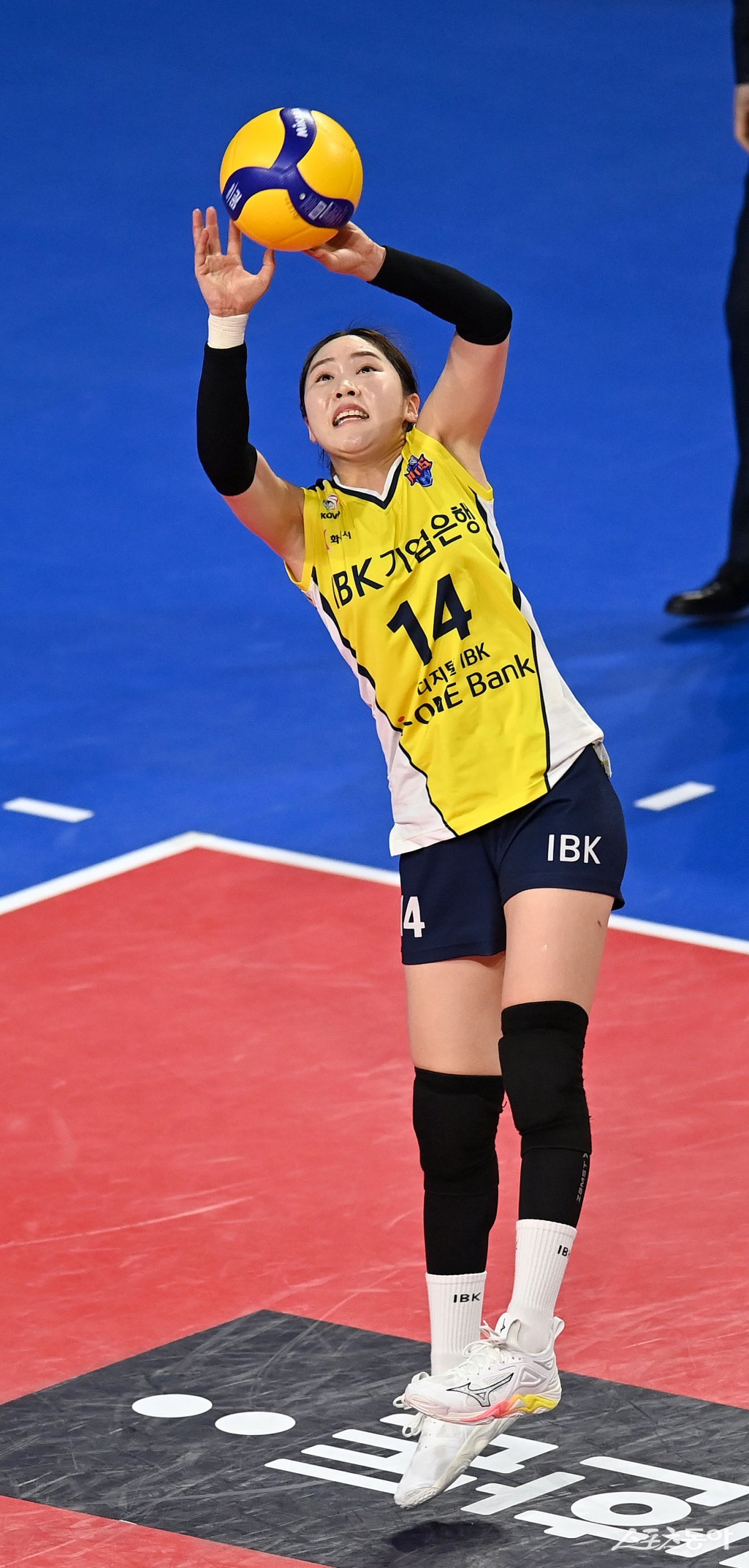 5일 화성종합경기타운 실내체육관에서 열린 ‘도드람 2023~2024 V리그’ 여자부 IBK기업은행과 흥국생명 경기에서 IBK기업은행 김채원이 디그를 하고 있다.