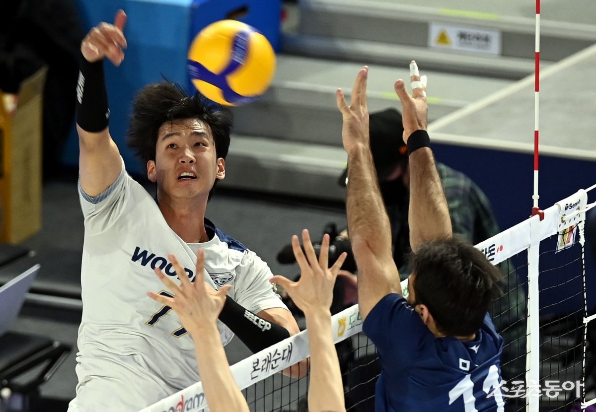 6일 인천 계양체육관에서 ‘2023-2024 도드람 V리그’ 인천 대한항공과 서울 우리카드의 남자부 경기가 열렸다. 우리카드