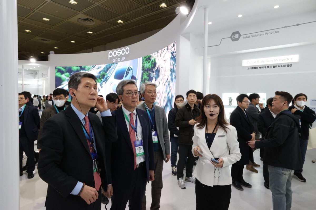 이 시장은 포스코홀딩스 부스를 찾아 이차전지 밸류체인에 대한 설명을 듣고 국제 정세 변화에 대한 대응 방안에 대해 질의하고 기업과 지방정부의 공동 대응 방안에 대해 논의했다.