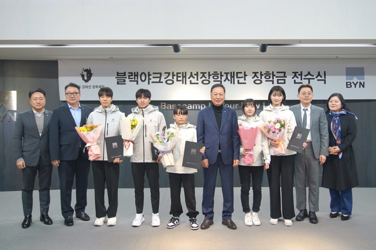BYN블랙야크그룹의 재단법인 블랙야크강태선장학재단(이사장 강태선)이 스포츠 클라이밍 인재 양성을 위해 장학금을 수여했다. 장학금 수여식은 강태선 이사장을 비롯해 재단 및 본사 관계자들이 참석한 가운데 6일 서초구 블랙야크 양재사옥에서 진행됐다. 이날 재단은 초등부부터 대학부까지 총 6명의 BYN특기장학생에게 장학증서와 장학금을 전달했다. BYN특기장학생들은 재단의 지원으로 각종 대회에서 맹활약을 펼치고 있다. 고교 재학 시절부터 BYN특기장학생으로 선발된 한국 스포츠 클라이밍의 라이징 스타 이도현이 대표적이다. 대학부 노희주는 2022 항저우 아시안게임 스포츠 클라이밍 국가대표로 발탁돼 여자 스피드 계주 동메달이라는 쾌거를 달성했다. 대학부 박선영은 2023 전국 드라이툴링대회에서 좋은 성적을 거두며 아이스클라이밍 국가대표로 선발됐고, 고등부 이준우와 노현승은 청소년 국가대표로 발탁됐다.