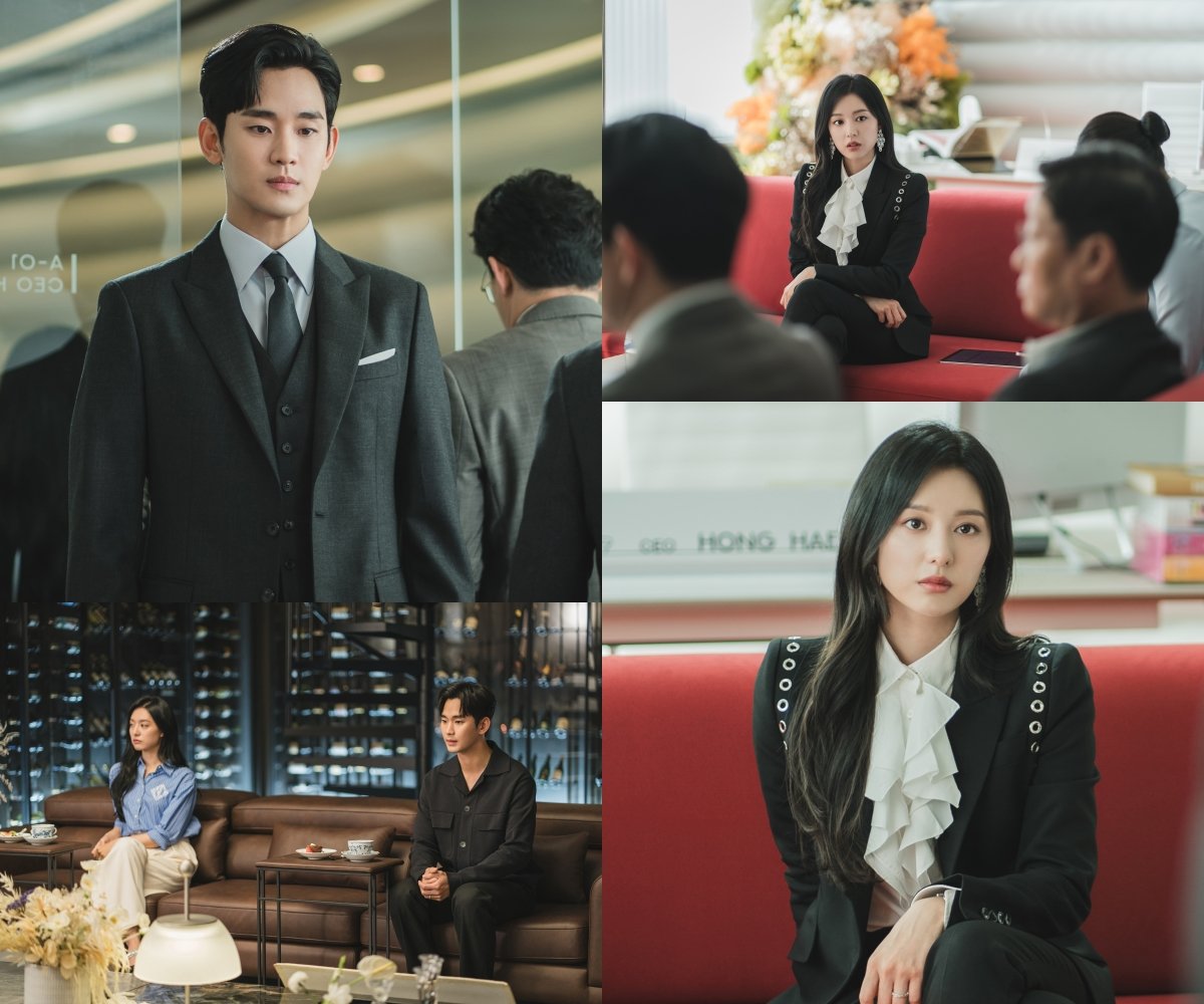 오늘 9일(토) 첫 방송을 앞둔 tvN 새 토일드라마 ‘눈물의 여왕’(극본 박지은/ 연출 장영우, 김희원/ 제작 스튜디오드래곤, 문화창고, 쇼러너스)에서 백현우(김수현 분)와 홍해인(김지원 분)이 사내에서 회의 도중 살벌하게 신경전을 벌이고 있는 모습이 공개돼 긴장감을 자아냈다.