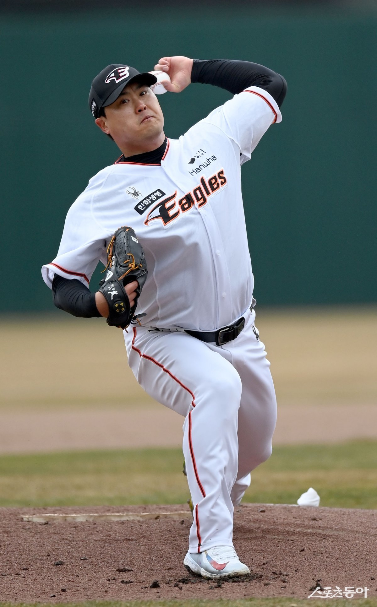 12일 대전 한화생명이글스파크에서 ‘2024 신한은행 SOL Bank KBO리그’ 시범경기 KIA 타이거즈와 한화 이글스 열렸다. 선발 투수로 등판한 한화 류현진이 역투하고 있다.