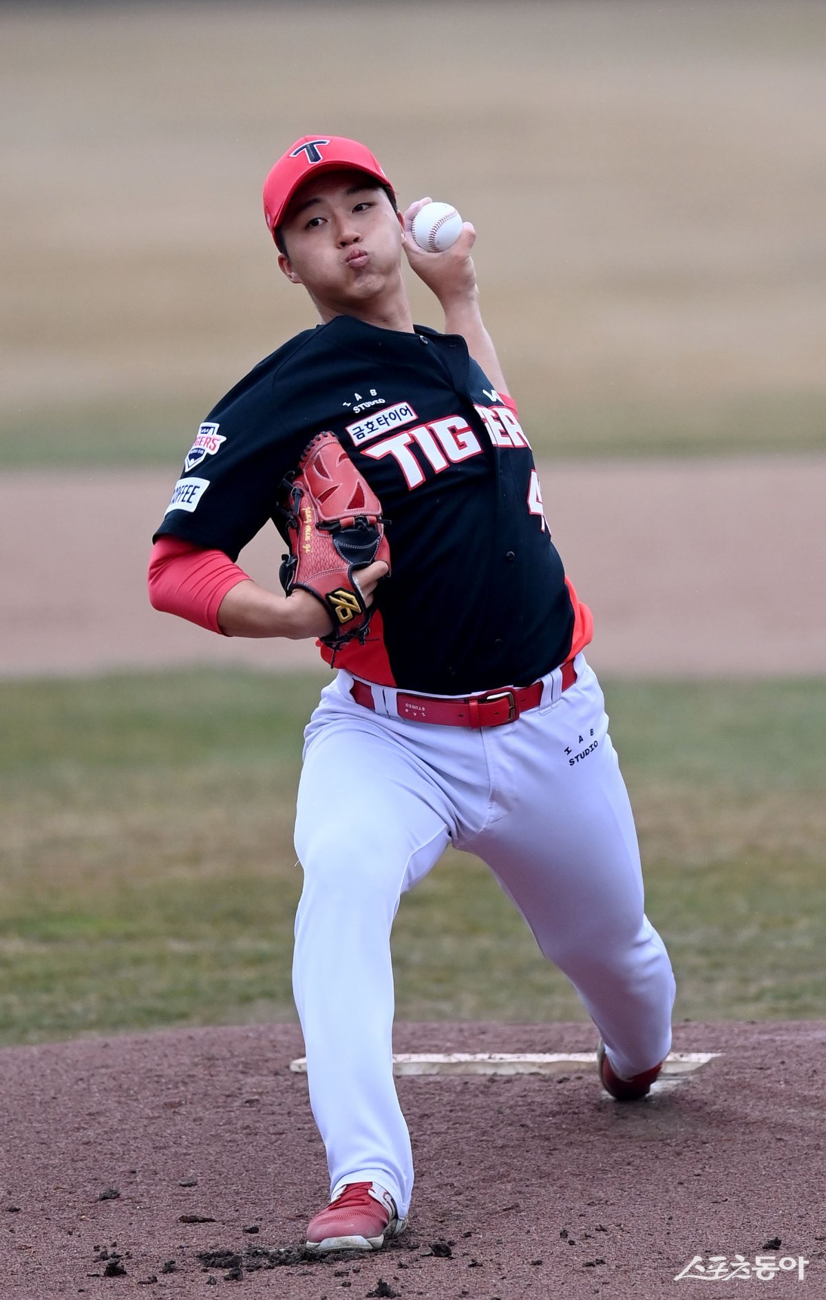 12일 대전 한화생명이글스파크에서 ‘2024 신한은행 SOL Bank KBO리그’ 시범경기 KIA 타이거즈와 한화 이글스 열렸다. 선발 투수로 등판한 KIA 장민기가 역투하고 있다.