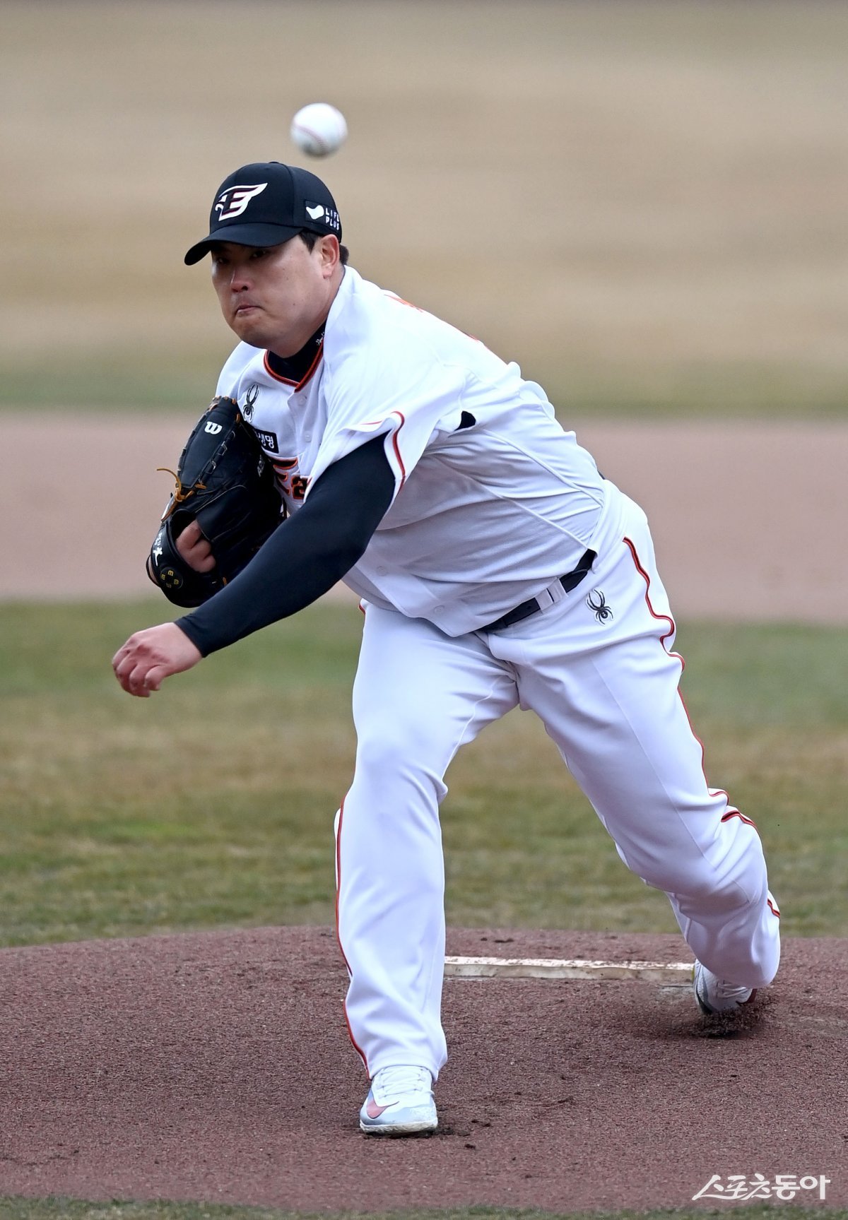 12일 대전 한화생명이글스파크에서 ‘2024 신한은행 SOL Bank KBO리그’ 시범경기 KIA 타이거즈와 한화 이글스 열렸다. 선발 투수로 등판한 한화 류현진이 역투하고 있다.