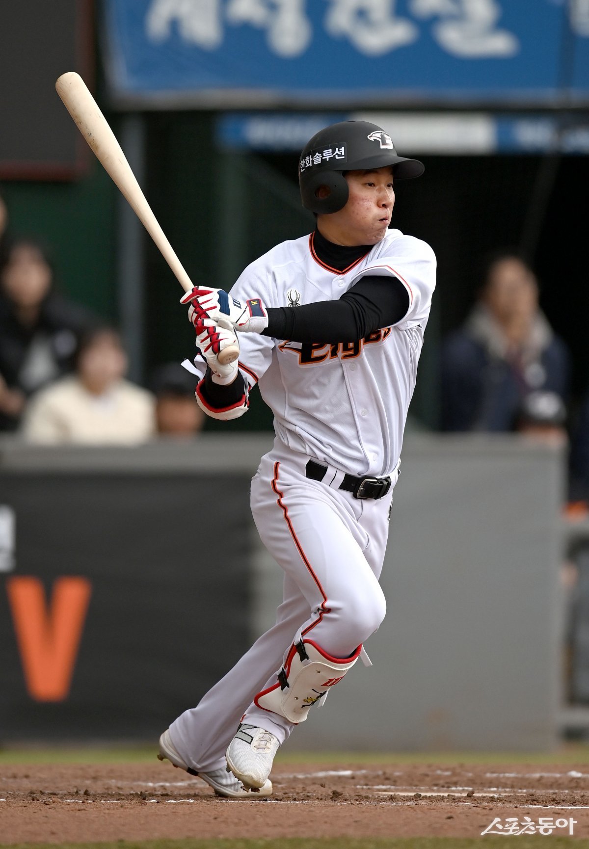 12일 대전 한화생명이글스파크에서 ‘2024 신한은행 SOL Bank KBO리그’ 시범경기 KIA 타이거즈와 한화 이글스 열렸다. 7회말 무사 한화 황영묵이 우전 안타를 치고 있다.