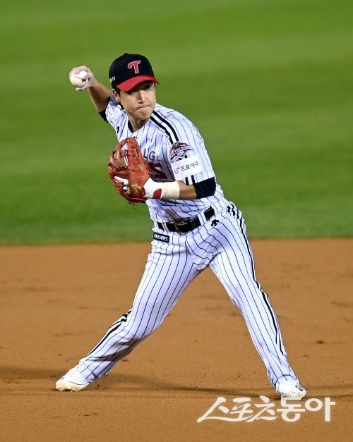 LG는 지난 프리에이전트(FA) 시장에서 롯데 자이언츠와 사인&트레이드로 전천후 내야수 김민성(36)을 떠나보냈다. 베테랑 김민성은 지난해 LG의 통합우승에 단단히 한몫했다. 특히 시즌 초반 주전 내야수들이 부상과 부진을 겪는 사이 2루수와 유격수를 오가며 꾸준히 출전했고, 공·수에서 모두 기여도가 높았다. 그 덕에 위기를 넘긴 LG는 결국 정규시즌-KS 통합우승을 거머쥐었다. LG는 김민성을 잔류시키려고 했지만, 더 후한 조건을 제시한 롯데로 이적을 허락해야 했다.