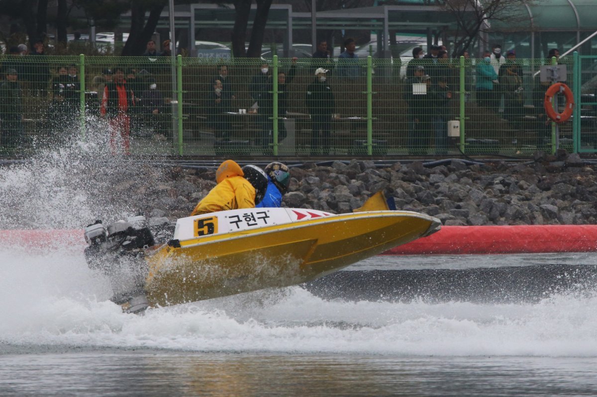 미사리경정장에서 출전 선수가 거센 바람을 뚫고 턴마크를 선회하고 있다. 사진제공|서울올림픽기념국민체육진흥공단