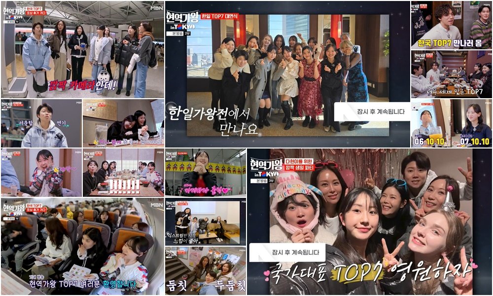 이날 방송에서는 ‘현역가왕’ 국가대표 TOP7 전유진-마이진-김다현-린-박혜신-마리아-별사랑이 ‘한일가왕전’을 앞두고 일본으로 날아가 펼친 버라이어티한 여행기가 담겼다. 무대에서 내려온 TOP7은 인간적인 매력을 대폭발시키며 업그레이드된 반전, 케미, 웃음을 선사했다.