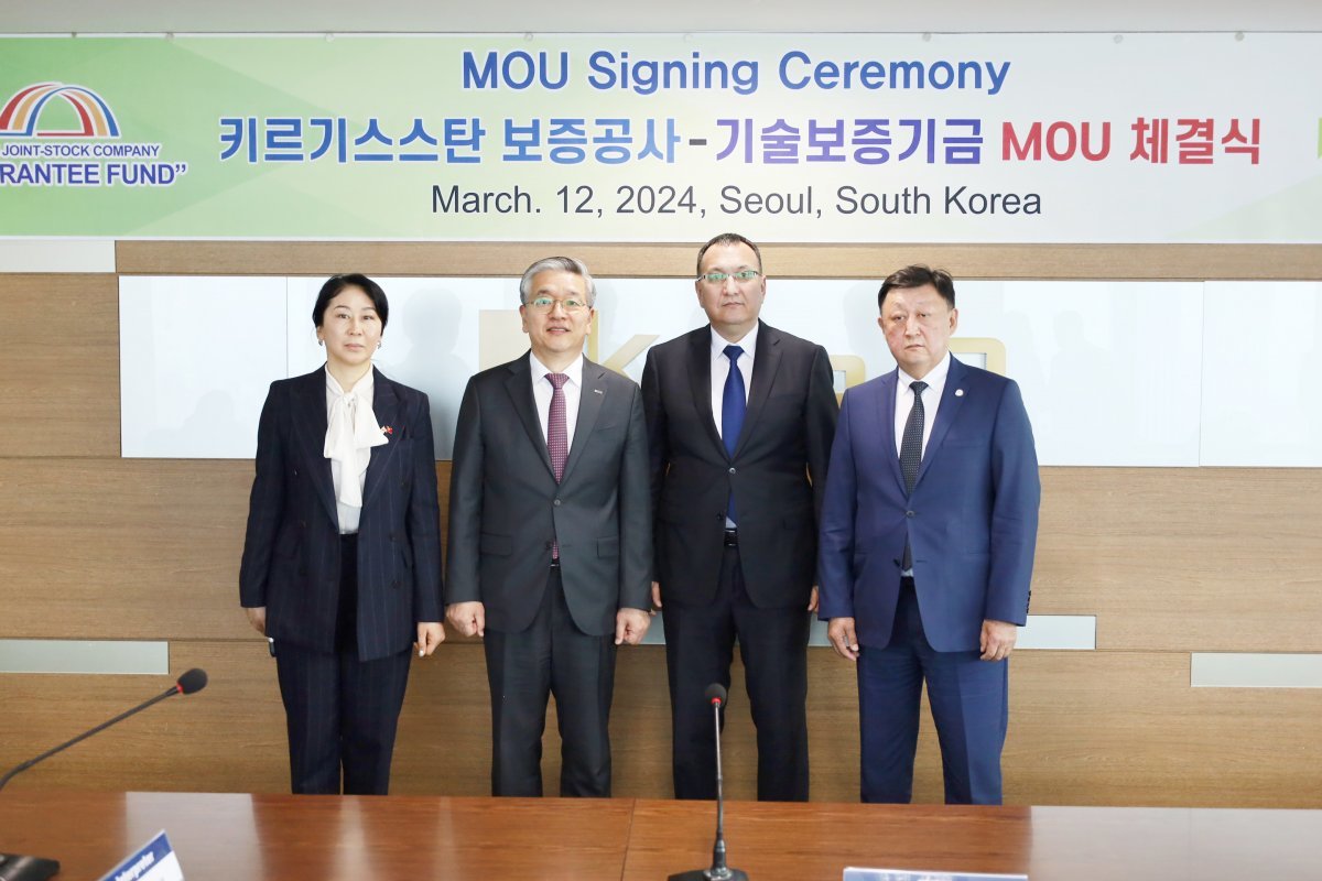 기술보증기금이 지난 12일 기보 서울사무소에서 키르기스스탄 보증공사와 중소기업 지원정책 발굴과 글로벌 파트너십 구축을 위한 MOU를 체결한 가운데 김종호 이사장이 관계자들과 기념촬영을 하고 있다. 사진제공ㅣ기술보증기금