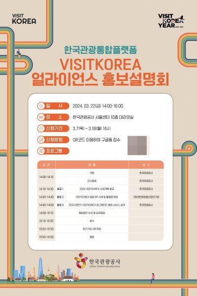 한편, 22일 서울 청계천의 관광공사 서울센터에서는 ‘2024 VK 얼라이언스 홍보설명회’를 진행한다. 운영 제도를 포함해 전년도 협업 기관의 성공 사례발표, 현장 네트워킹 세션 등을 실시한다.