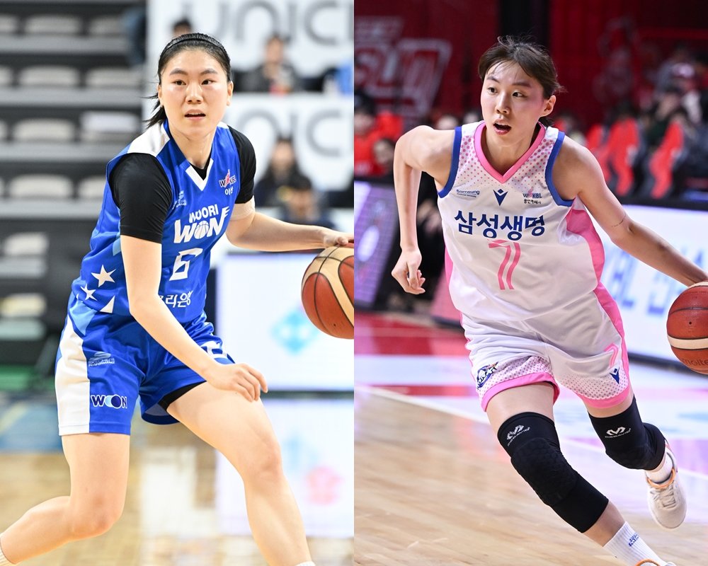 우리은행 나윤정(왼쪽), 삼성생명 강유림. 사진제공 | WKBL