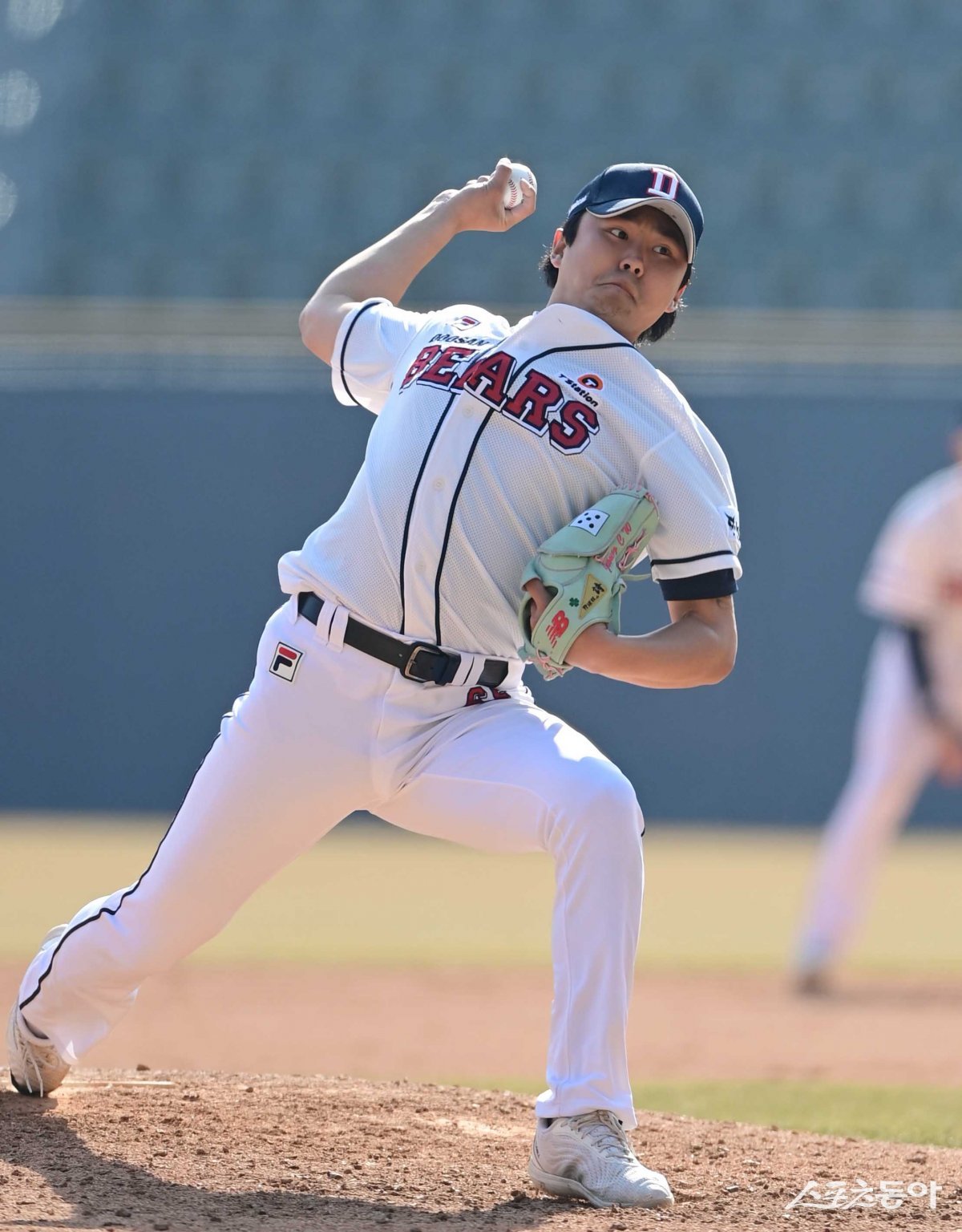 14일 서울 잠실야구장에서 열린 ‘2024 신한 SOL 뱅크 KBO리그’ 두산 베어스와 KIA 타이거즈의 시범경기에서 9회초 두산 정철원이 교체로 마운드에 올라 역투하고 있다.