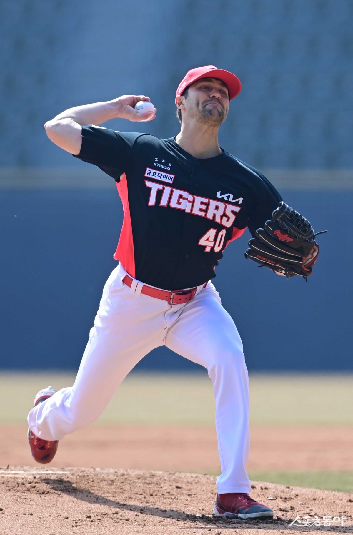 14일 서울 잠실야구장에서 열린 ‘2024 신한 SOL 뱅크 KBO리그’ 두산 베어스와 KIA 타이거즈의 시범경기에서 선발 투수로 마운드에 오른 KIA 네일이 역투하고 있다.